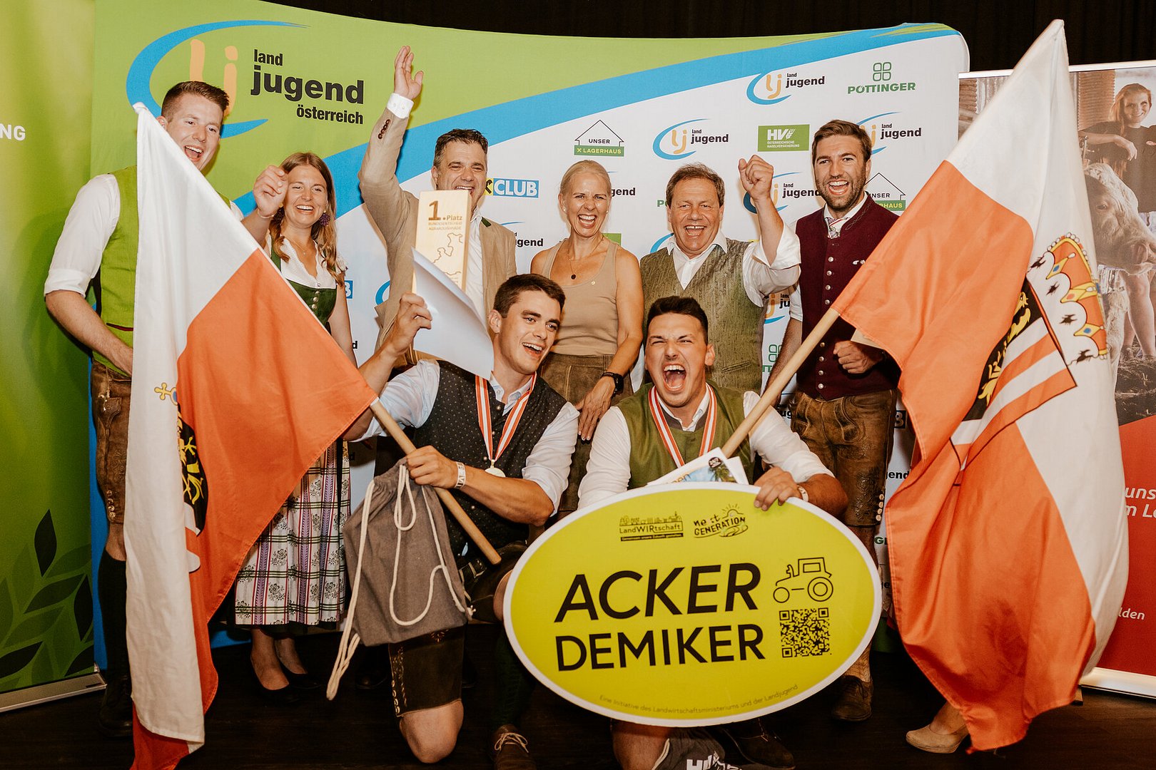 Am Foto hinten von links nach rechts: Bundesleiter Landjugend Osterreich Markus Buchebner, Landesleiterin Landjugend Salzburg Magdalena Fink, Präsident der LK Salzburg Ök.-Rat Rupert Quehenberger, Abg. z. Sbg. Landtag Nicole Leitner, Obmann Landesverband Maschinenring und Vorstandsvorsitzender Thomas Ließ, Landesleiter Landjugend Salzburg Andreas Steiner und Bundesleiterin Landjugend Österreich Valentina Gutkas