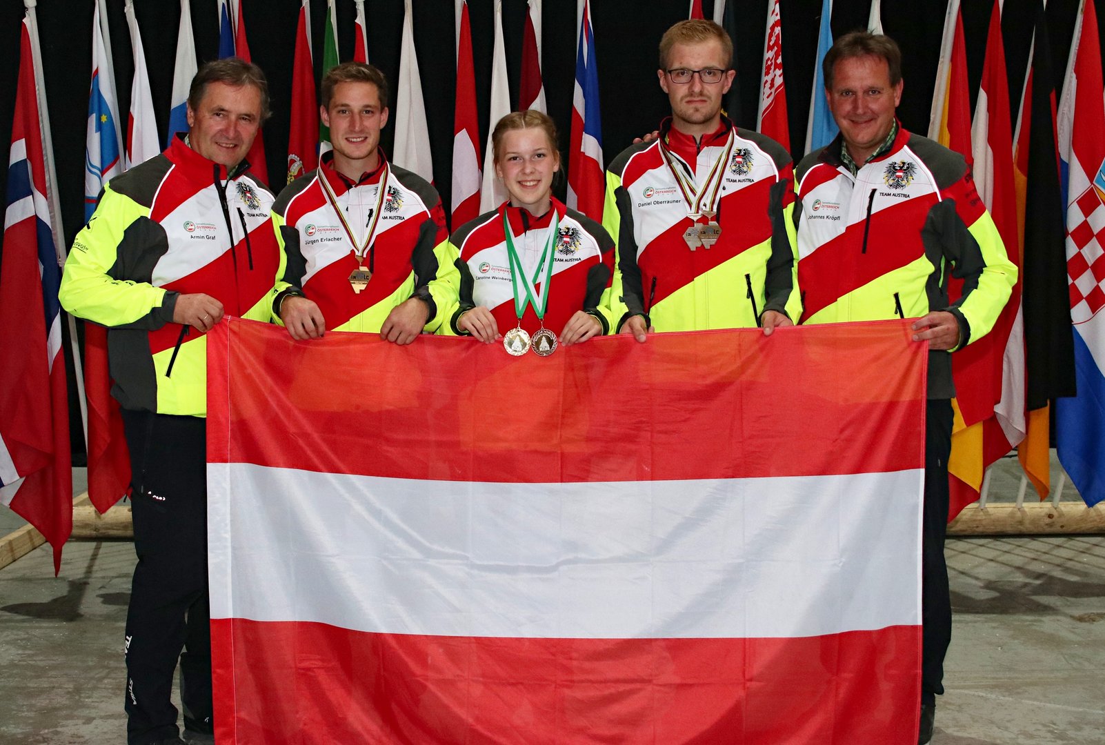 Österreichs Team holt bei der Forstarbeiter-WM in Norwegen neun Medaillen – darunter war auch historisches Edelmetall. Daniel Oberrauner holte Silber in der Gesamtwertung, das Team sprang in der Endabrechnung ebenfalls aufs Podium. Für die Landjugend Österreich waren Daniel Oberrauner sowie Caroline Weinberger am Start! Weinberger war die erste Frau Österreichs, die bei der Forstarbeiter WM ihr Können zeigen konnte. Großer Jubel herrscht im Lager des österreichischen Forstwettkampf-Nationalteams: Die WM in Lillehammer war ein sensationeller Erfolg. Gleich neun Medaillen kann die Truppe rund um die Teamchefs Armin Graf und Johannes Kröpfl mit nach Hause nehmen. Am Finaltag der Weltmeisterschaft kam noch viermal Edelmetall dazu. Gleich am Morgen glückte der erste Medaillengewinn: Die „jungen Wilden“, wie Österreichs aktuelles Team genannt wird, holte in der Länderstafette Silber. Bei diesem forstlichen Staffelwettbewerb tritt jedes Team mit vier Startern an. Diese haben eine 18 Meter lange Bahn hin- und zurück zu absolvieren. Mit der Motorsäge müssen dabei sechs Holzscheiben abgeschnitten werden, ehe der nächste Athlet ins Rennen gehen kann. Für Österreich waren dies: Mathias Morgenstern, Daniel Oberrauner, Harald Umgeher und Jürgen Erlacher. Eine Premiere in Silber Als Schlussmann Jürgen Erlacher den Zielstrich erreichte, war klar: Es wird ein Spitzenplatz. Dass es für eine Medaille reichen würde, war trotz einer schnellen und fehlerfreien Darbietung nicht sicher. Andere Nationen waren schneller als Österreich, blieben jedoch nicht fehlerfrei, was entscheidende Punkte kostete. Am Ende hatten jedoch nur die Nachbarn aus Liechtenstein zwei Zähler mehr am Konto, da sie um knapp zwei Sekunden schneller waren als die Österreicher. „Diese Medaille bedeutet uns sehr viel. Die Länderstafette ist aufwändig zu trainieren und es kämpfen so viele Länder um den Sieg. Schön, dass wir diesmal belohnt wurden“, jubelte Coach Armin Graf über die historische Medaille, denn Österreich hatte es in dieser Disziplin noch bei keiner Weltmeisterschaft aufs Podium geschafft. Das Finale, ein Nervenkitzel Es sollte jedoch nicht das letzte Edelmetall des Tages für die rot-weiß-rote Equipe bleiben. Mit Rang 4 in der Zwischenwertung bei den Profiteams starten die Österreicher (Jürgen Erlacher, Mathias Morgenstern und Harald Umgeher) in den Schlussbewerb, das Entasten. In dieser Disziplin wurden bei Weltmeisterschaften schon sicher geglaubte Führungen verspielt und unglaubliche Aufholjagden gestartet. Das Entasten gleicht einem Slalom im Skisport – jeder Athlet muss in möglichst kurzer Zeit eine vorgegebene Kombination von 30 künstlichen Äste an einem Stamm absägen. Dabei gilt es keine Fehler zu machen – sprich: nicht zu viel vom Ast stehen zu lassen oder in den Stamm zu schneiden. Ein Husarenritt auf der Kettensäge! Die Österreicher wollten unbedingt noch aufs Stockerl springen, hat die Mannschaftswertung doch eine ganz besondere Bedeutung im Forstwettkampf. Die Österreicher entasteten zwar schnell, kassierten jedoch etliche Punkteabzüge. Ähnlich erging es vielen anderen Athleten im Starterfeld. Das Entasten, ein Nervenkitzel, doch am Ende hatte das rot-weiß-rote Team gut lachen: Österreich landete hinter Weißrussland und Deutschland auf Platz 3. Strahlende Gesichter, auch bei Mathias Morgenstern: „So eine Medaille im Team ist etwas ganz Besonderes. Es war einfach nur schön mit allen am Podium zu stehen.“ Silber für Oberrauner Anders die Ausgangslage vor dem Entasten bei Daniel Oberrauner im Juniorenbewerb. Er führte das Feld mit einem knappen Vorsprung an. Ein Fehler und der Vorsprung war weg. Der junge Kärntner legte jedoch keine Zurückhaltung an den Tag und war einer der Schnellsten im Juniorenfeld. Ein minimaler Fehler passierte ihm jedoch, sodass ihn der Deutsche Thomas Schneider um zwei Pünktchen in der Endabrechnung abfing. Nachdem der erste kurze Ärger über den Schnittfehler verraucht war, konnte sich der Vize-Juniorenweltmeister über seine insgesamt vierte – und wichtigste – Medaille bei dieser WM richtig freuen: „Es sind so viele gute junge Athleten hier nach Lillehammer gekommen und haben es schlussendlich nicht aufs Podium geschafft. Ich bin wirklich happy, dass es mir gelungen ist.“ Bronze für Weinberger Bei der Siegerehrung im Rahmen der großen WM-Abschlussgala am Abend gab es auch für Österreichs erste Frau bei der Forstarbeiter-WM, Caroline Weinberger, noch eine Überraschung: Sie verfehlte zwar als Vierte in der Einzelwertung das Podest, durfte sich aber doch noch über eine dritte Medaille freuen. Die Veranstalter hatten sich beim ersten Antreten der Frauen bei einer Weltmeisterschaft etwas Besonderes einfallen lassen: eine Frauen-Länderstafette. Dafür wurden die einzelnen Starterinnen aus den Nationen zu Teams zusammengewürfelt. Weinberger trat gemeinsam mit der Ungarin Veres Boelarka, der Französin Amelie Aubriot und Anne Helene Sommerstad aus Norwegen an und landete auf dem 3. Platz. „Dass ich gleich drei Medaillen mit nach Hause nehmen darf ist einfach ein Traum“, strahlte die 19-Jährige. Unterm Strich: neun Medaillen Somit kann Österreich neun Medaillen (2x Gold, 3x Silber, 4x Bronze) mit auf die Heimreise nehmen. Das Fazit aus österreichischer Sicht nach drei spannenden Tagen: Es war eine grandiose Forstarbeiter-Weltmeisterschaft, bei der Sieg und Niederlage oft knapp beisammen lagen. Österreichs junges Team zeigte groß auf, sammelte fleißig Medaillen und viel Erfahrung. Norwegen verlässt man auf jeden Fall mit jeder Menge Edelmetall im Gepäck und freut sich bereits auf die WM 2020 in Serbien. Wer die Ergebnisse der Forstarbeiter-Weltmeisterschaft in Lillehammer genau studieren möchte, findet unter www.wlc2018.com/results alle Klassements im Detail. Die Ergebnisse im Detail: Daniel Oberrauner Zielfällung: 7. Platz mit 646 Punkten Kettenwechsel: 3. Platz mit 130 Punkten Kombinationsschnitt: 4.