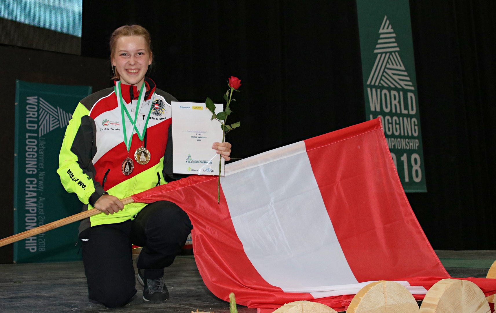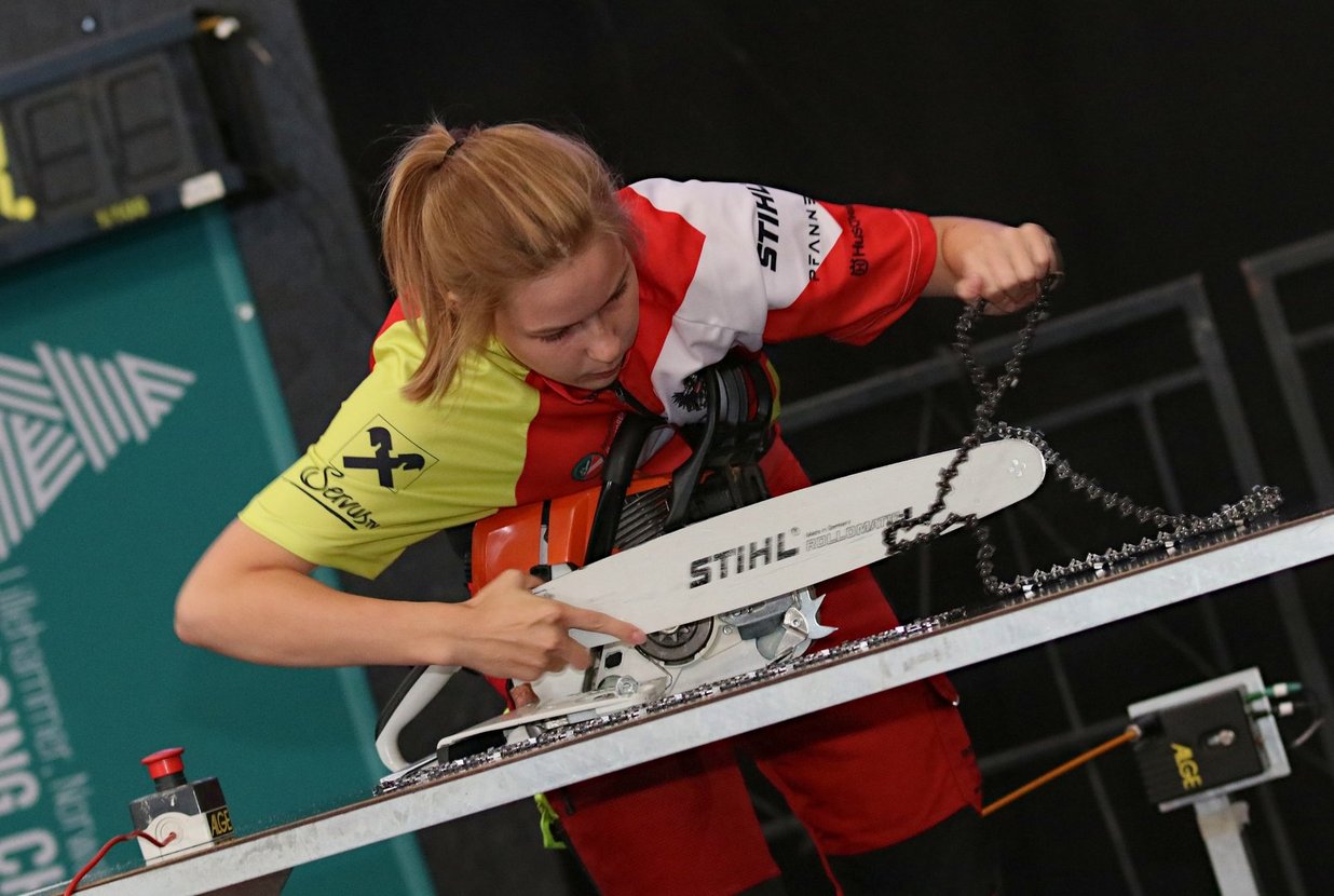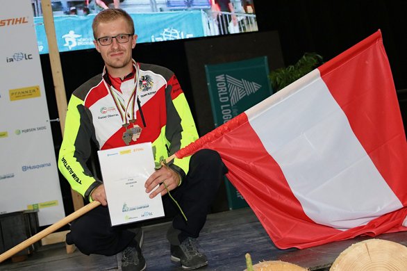 Daniel Oberrauner „Erstmals für Österreich in der Länderstafette eine Medaille zu gewinnen, ist schon etwas Besonderes. Da hat man eine große Freude. Wir können als Team sowieso mit erhobenen Haupt nach Hause fliegen, das war wirklich eine geschlossen starke Leistung.“ Caroline Weinberger „Ich bin einfach nur überglücklich. Drei Medaillen und ein Platz im vorderen Drittel in der Gesamtwertung, damit bin ich mehr als zufrieden. Es freut mich, dass auch mit dem Team hier alles so super gelaufen ist – aber jetzt freue ich mich schon auf daheim.“ Armin Graf (Nationalteam-Coach) „Es war ein ständiges Auf und Ab. Wir haben uns bei dieser WM viele Fehler erlaubt – wir sind das jüngste Team im Feld gewesen, da dürfen Fehler passieren. Vielleicht wäre da oder dort mehr möglich gewesen, doch man soll nicht unbescheiden werden. Wir haben neun Medaillen geholt, das ist sensationell.“ Über den Forstwettkampfverein Österreich Der gemeinnützige Verein fördert die Austragung von Forstberufswettkämpfen in Österreich. Insbesondere unterstützt er die österreichischen Teilnehmer/innen an Welt- und Europameisterschaften. Die Forstwettkämpfe dienen u.a. dazu, den Sicherheitsaspekt in der Forstarbeit sowie die forstliche Ausbildung ins Blickfeld der Öffentlichkeit zu rücken. Neuigkeiten rund um den Forstwettkampfverein sowie das österreichische Nationalteam findet man auf der Facebook-Seite des Vereins unter: www.forstwettkampf.at Die Forstarbeiter-Weltmeisterschaft 2018 Die Forst-WM fand dieses Jahr von 2. bis 5. August in Lillehammer (Norwegen) statt. In der Olympia-Stadt von 1994 kämpften die weltbesten Forstwettkämpfer aus 28 Nationen um Medaillen. Neben den Einzelbewerben (Kettenwechsel, Kombinierter Schnitt, Präzisionsschnitt, Zielfällung und Entasten), den daraus resultierenden Team- und Gesamtwertungen wurde auch wieder der spektakuläre Staffelwettbewerb, die Länderstafette, ausgetragen. Erstmals gab es im Rahmen der WM auch einen Damen-Bewerb. Die nächste WM findet 2020 in Serbien statt. Die fünf WM-Einzeldisziplinen - Kettenwechsel: Schwert wenden und Kette wechseln, lautet hier die Devise. Die Motorsäge muss dabei wieder einsatzbereit zusammengesetzt werden, denn die Bewerbe Kombinierter Schnitt und Präzisionsschnitt müssen ohne weitere Veränderungen an der Maschine damit durchgeführt werden. - Kombinationsschnitt: Von zwei Stämmen wird je eine 3 bis 8 cm dicke Holzscheibe abgeschnitten. Die Schwierigkeit dabei ist, dass von unten und oben nur bis zur Hälfte des Stammes geschnitten werden darf. Beide Schnitte sollten sich ohne Versatz treffen und rechtwinklig zur Stammachse durchgeführt werden. - Präzisionsschnitt: Wie beim kombinierten Schnitt wird von zwei Stämmen eine 3 bis 8 cm dicke Holzscheibe abgeschnitten – diesmal aber nur von oben. Allerdings sind die Stämme bei dieser Disziplin auf einem Brett am Boden befestigt. Die Scheibe soll möglichst vollständig abgeschnitten werden, ohne jedoch das Brett anzuritzen. Eine Sägemehlschicht versperrt den Athleten zusätzlich die Sicht auf die Kontaktzone zwischen Stamm und Brett – hier sind Augenmaß und Fingerspitzengefühl gefragt. - Zielfällung: Innerhalb von drei Minuten soll ein Baum (Mast) so nahe wie möglich an einem vorgegebenen Ziel gefällt werden – natürlich muss der Athlet dabei arbeitstechnische Vorgaben einhalten und auf die Arbeitssicherheit achten. - Entasten: Die Athleten müssen auf zylindrischen Stämmen 30 runde Äste, die in einem standardisierten Muster eingesetzt sind, absägen. Diese Aufgabe gilt es so stammeben und rasch wie möglich zu erledigen, ohne dabei auf die Arbeitssicherheit zu vergessen. Weiterführende Links Informationen zur Weltmeisterschaft 2018 in Lillehammer finden Sie unter: www.wlc2018.com