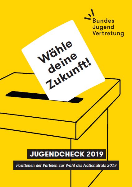 Am 29. September 2019 wird in Österreich ein neuer Nationalrat gewählt. Damit Jugendthemen im Wahlkampf nicht untergehen, hat die Bundesjugendvertretung (BJV) diesen Jugendcheck erstellt. Die BJV ist die überparteiliche Interessenvertretung aller Kinder und Jugendlichen in Österreich. Wir wollen die Wahl für junge Wähler*innen interessant und einfacher machen. Denn: Nur wer wählen geht, bestimmt auch mit! Im Wahlkampf ist es manchmal schwierig, den Überblick zu behalten. Darum hat die BJV den Jugendcheck gemacht und die Positionen der Parteien abgefragt. Der Check soll dir dabei helfen, eine informierte Wahlentscheidung treffen zu können. Folgende Parteien haben mitgemacht: