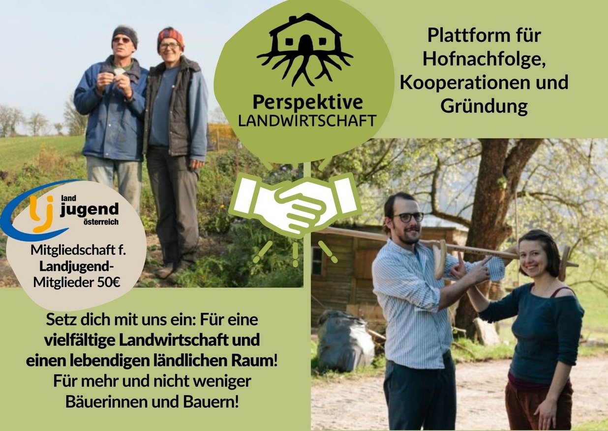 Von Beginn an besteht eine enge Zusammenarbeit mit der Landjugend. So wurde die Broschüre “Außerfamiliäre Hofnachfolge” gemeinsam realisiert, eine Bedarfsstudie initiiert und von der Landjugend 2015 bei der Bundesanstalt für Agrarwirtschaft in Auftrag gegeben. Eines von vielen für manche überraschenden Erkenntnisse daraus ist, dass in puncto fehlende Hofnachfolge großer Handlungsbedarf besteht: 28% der Betriebsleiter*innen über 50 haben keine gesicherte Nachfolge. Verbunden damit ist meist die Aufgabe des Betriebes, eine Entwicklung, die sich seit Jahrzehnten in der Agrarstruktur widerspiegelt. Oft kann oder will niemand im erweiterten Familienkreis den Betrieb übernehmen. Hier gilt es Alternativen zur Aufgabe des Betriebes zu bieten, denn viele Bäuerinnen und Bauern wünschen sich, ihr Lebenswerk in gute Hände zu übergeben. Viele Menschen wollen wieder den Beruf Landwirt*in sehr gerne ergreifen, trotz großer Herausforderungen und viel Arbeit - darunter Neueinsteiger*innen ebenso wie weichende Erb*innen, deren Geschwisterteil den elterlichen Betrieb übernimmt. Ermäßigter Beitrag für Landjugend-Mitglieder Alle Interessierten können bei Perspektive Landwirtschaft eine Mitgliedschaft in Anspruch nehmen. Um die Kosten für den Betrieb der Website, Mitgliederbetreuung und Veranstaltungen zu decken, ist neben der Bildungsförderung des Fonds ländliche Entwicklung LE 14-20 besonders die Unterstützung der Mitglieder eine wichtige Säule. Die Jahresmitgliedschaft beträgt 60€ regulär und 120€ fördernd und gilt für ein ganzes Jahr. Für Landjugend-Mitglieder gilt ein ermäßigter Mitgliedsbeitrag von 50€.