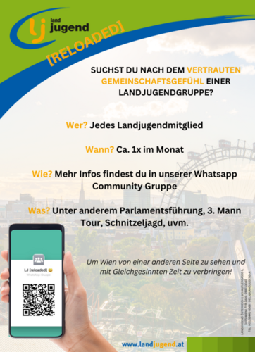 Unter diesem Motto steht das Projekt der Landjugend Österreich mit dem Ziel, den vielen in Wien studierenden oder arbeitenden Jugendlichen das vertraute Gemeinschaftsgefühl einer Landjugendgruppe zu geben.